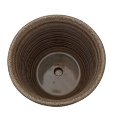 Alise Ceramic Planter With Attached Saucer – Tan/Grey Matte – 5.5″ X 5.5″