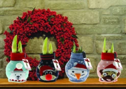Take the ugly Christmas sweater tradition to a new level — wax amaryllis dressed up in knitted Christmas sweaters. These no-fuss amaryllis are a great gift idea for those without a green thumb.
