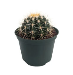 Country of Origin: Central Mexico. Description: Originating in Mexico, this popular cactus reaches up to 6 ft (1.8 m) in height and spread. It has a single, globe-shaped, pale green body that stretches upwards in maturity, becoming barrel-shaped. This stem is heavily ribbed with numerous areoles sprouting radial, yellow spines. In summer, larger cacti produce a circle of vivid, yellow flowers from a crown at the top of the plant. Culture: Frost tender but resistant to very dry conditions, they grow best in well-drained soil and a position in full sun, which will help to maintain the lustre of the spines and longevity of the flowers. Propagate from cuttings or seed. USDA Zone: 9-12. Excellent house plant!