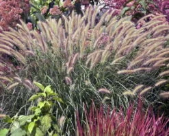 Finely textured rich green foliage. The coppery tan seed plumes are showy from late summer into winter. This dwarf variety will be at home in any size border. Does not reseed itself. Golden fall foliage.