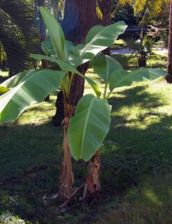 Hardy Basjoo Banana Plant – Musa basjoo. Amazing “hardy tropical” banana for the north or south, though native to the Ryukyu Archipelago which lies between Japan and Taiwan, Musa basjoo is also very common in parts of China. This specimen will survive temperatures as low as -20 if mulched. Full sun with lots of water & fertilizer to achieve the amazing growth rate, but it will do fine in light shade as well. Beautiful deep green clump can grow up to 18′ tall or more, and really gives a tropical warm sunny feeling. Great for any place in the garden, especially great around pools or patios, courtyards and wonderful in a border with other colorful perennials & grasses. Fruit will set from white flowers if the tree can achieve over 25-35 leaves in one season and talk about texture, leaves can grow 2’x 6′!!!. Mix with fine and medium textured plants for variety.
