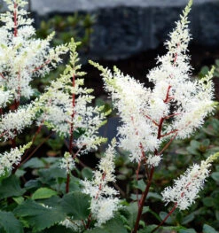 This compact selection, part of the Musicâ„¢ series, has fluffy plumes of clear white, over a mound of elegant, lacy bronze-green leaves. Great near the border edge, also thrives in tubs, or mixed containers. Fertilize in April and June. Excellent for cutting. Seed heads may be removed, or left on the plant for winter interest. Will tolerate full sun, in cool summer regions. USPP#14855